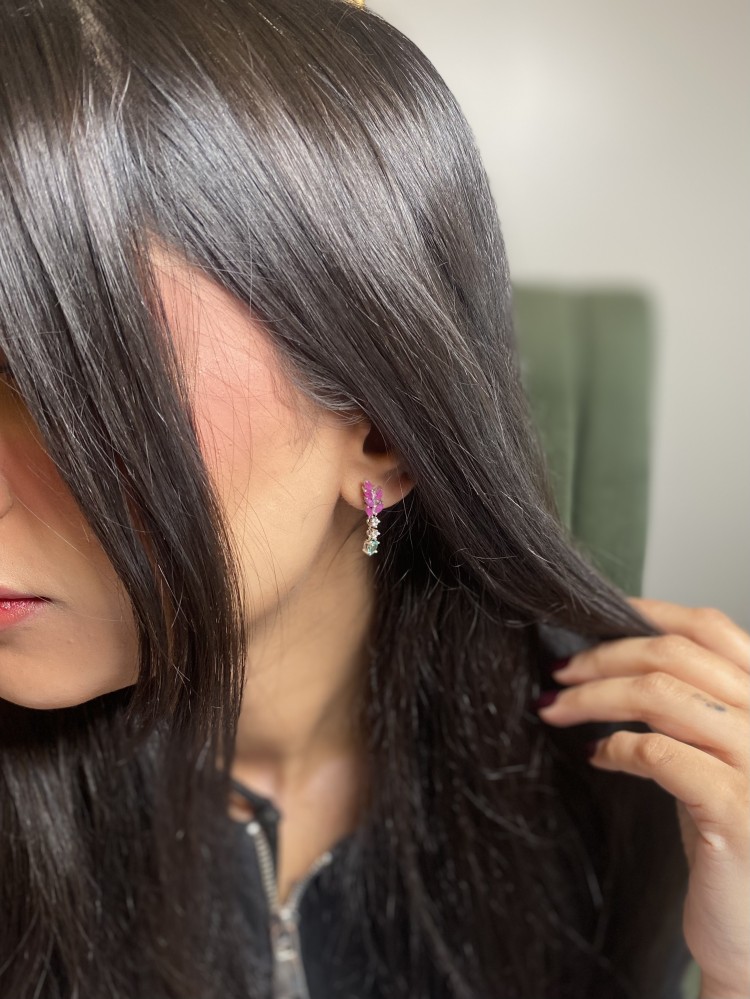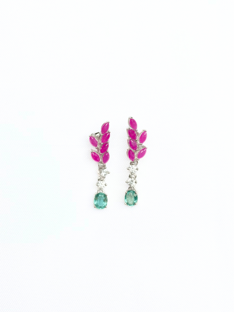 *حلق الياقوت والزمرد مصنوع من الفضة 925 المطلية بمعدن الروديوم الثمين